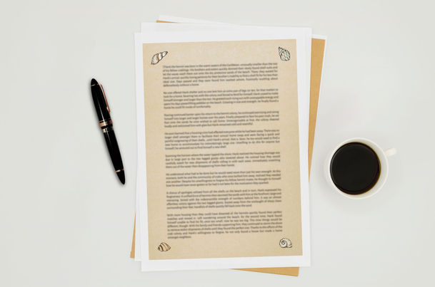 I was asked to come up with one page and cover illustrations for a short story about a hermit crab called Hank.